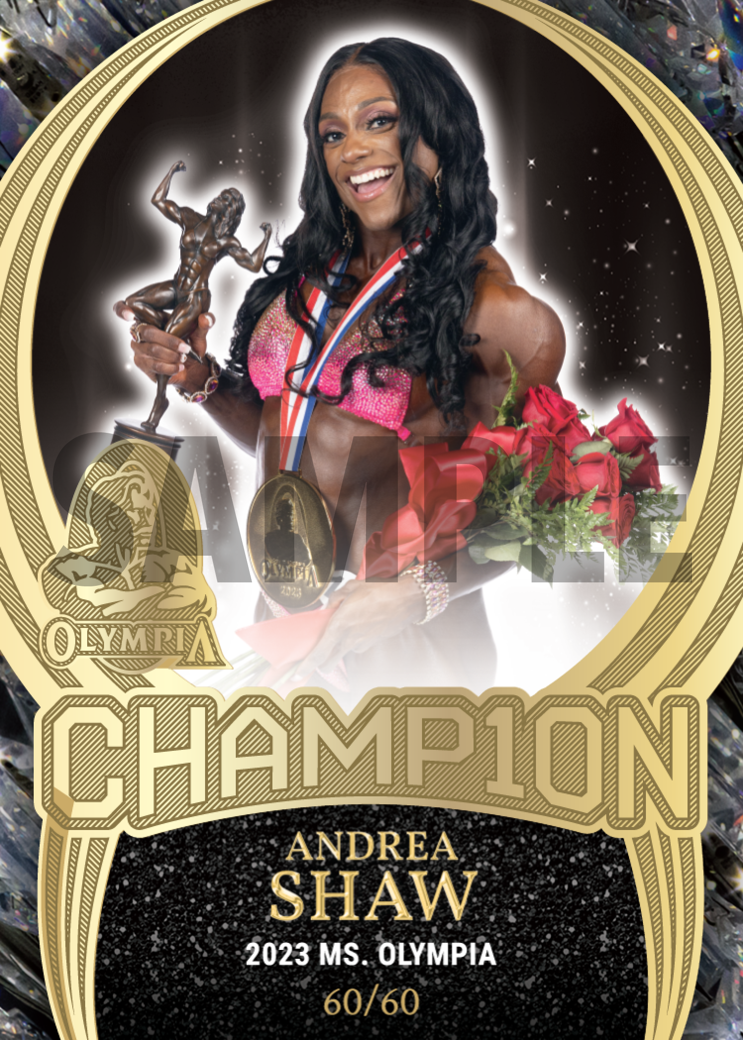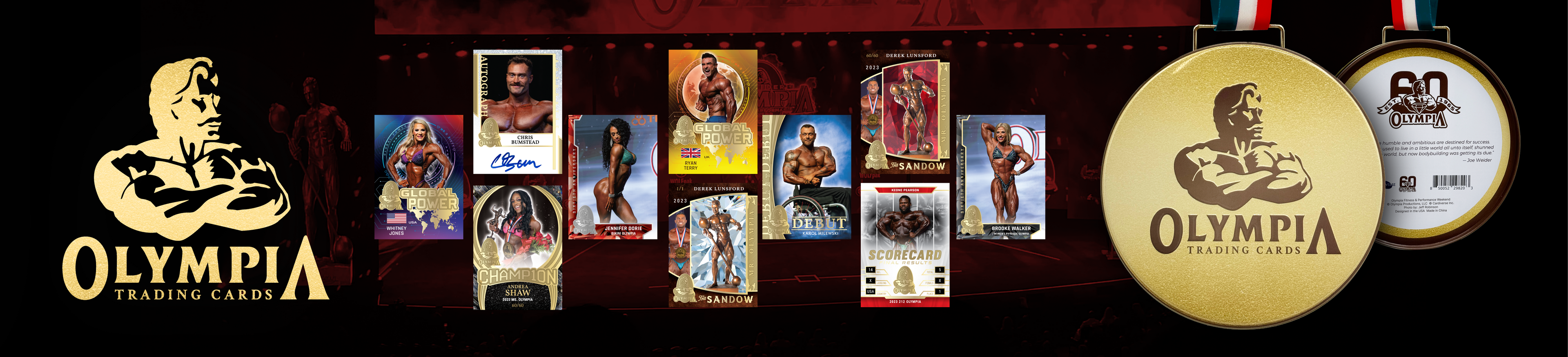 Celebrating six decades of bodybuilding excellence, the Olympia Trading Cards 60th Anniversary Edition is set to launch in 2024. This special collector's set showcases 182 elite athletes across 11 divisions, representing the pinnacle of the sport. Featuring 10 distinct rarities—Base, Base Holo, Debut, Global Power, Global Power Holo, Score Card, The Sandow, The Champions, Auto—each card type highlights different aspects of the competition, from iconic moments to outstanding individual achievements. Expertly designed and produced with top-tier craftsmanship, this collection is a must-have for both bodybuilding enthusiasts and trading card collectors, offering a timeless tribute to the legacy of Olympia.